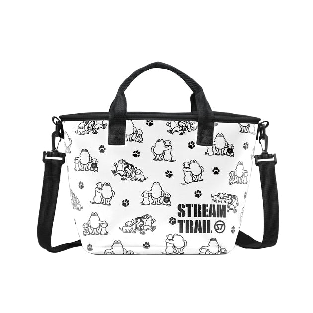 商品説明 愛らしい犬たちとブランドマスコットのDAVEが軽やかに描かれた、親しみやすさと遊び心を併せ持つシリーズです。ファスナー式の蓋は内容物を確実に保護し、インナーポケットは小物の整理に適した構造となっています。必要な携行品をしっかり収められる実用性を備え、散歩や近距離の外出、旅行時のサブバッグなど、多様な用途に対応します。