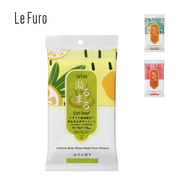 天然温泉水と温泉鉱石から数十種類のミネラルを抽出・濃縮したクラフト温泉を配合した、「温泉を持ち運ぶ」新発想のゆるまるボディシートです。