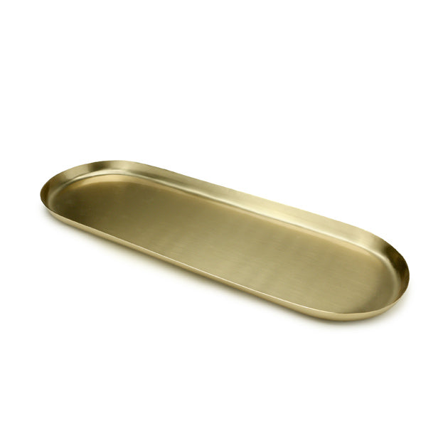 | 商品説明 | 光沢のあるゴールドカラーが高級感のある、シンプルでモダンな金属製のトレイです。シンプルなデザインなので、インテリアのスタイルを選ばず幅広い用途で使用できます。他のサイズのトレーと重ねて使用しても◎ |