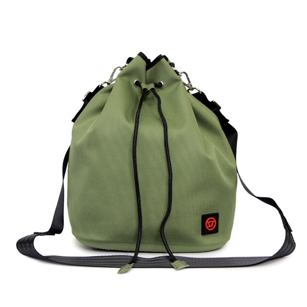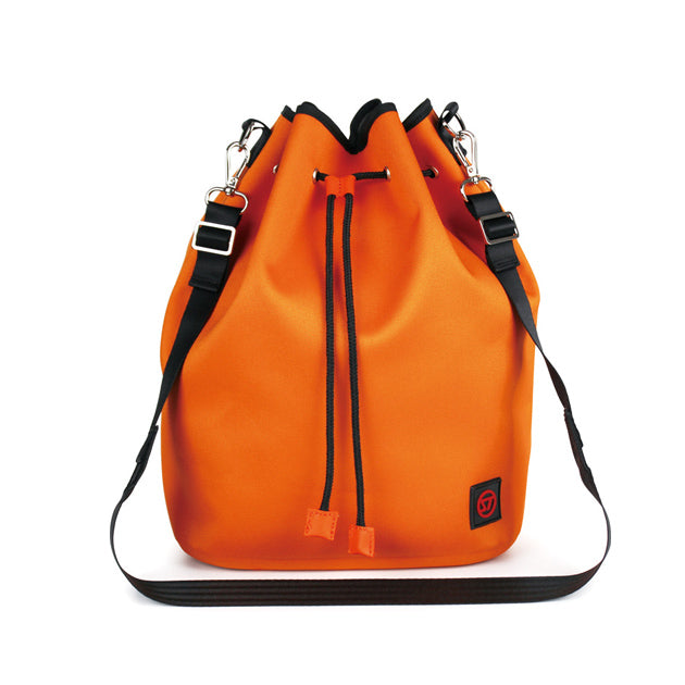 開口部を絞る少し太めのコードがアクセントになり、本体も目を引くカラー、デザインとなっています。ショルダーストラップは、ご自身でフィットする長さに調整してお使いいただけます。街中はもちろん、海やプールサイドなどの水辺のシーンでも重宝します。容量7L。取り外し可能なインナーポシェットが付いています。